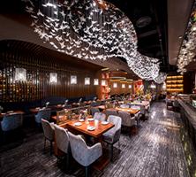 案例介绍:西餐厅以黑、红、灰三色作为规划主色,西餐厅中融入绘画、雕塑等艺术作品,体现餐厅的艺术主题,同时融入古典元素打造别具一格的感官餐饮空间。